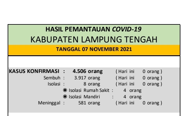 HASIL PEMANTAUAN COVID-19 KABUPATEN LAMPUNG TENGAH : Tanggal 07 November 2021