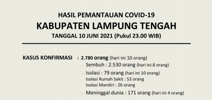 Download dokumen : HASIL PEMANTAUAN COVID-19 KABUPATEN LAMPUNG TENGAH : Tanggal 10 Juni 2021 Pukul 23.00 WIB
