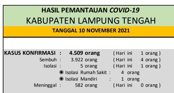 HASIL PEMANTAUAN COVID-19 KABUPATEN LAMPUNG TENGAH : Tanggal 10 November 2021