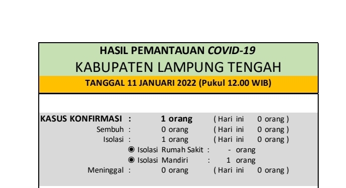 HASIL PEMANTAUAN COVID-19 KABUPATEN LAMPUNG TENGAH : Tanggal 11 Januari 2022