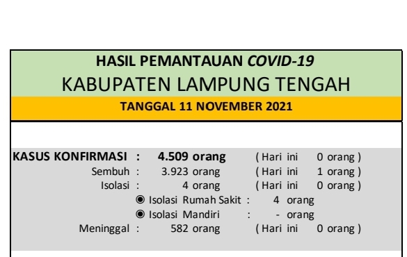 HASIL PEMANTAUAN COVID-19 KABUPATEN LAMPUNG TENGAH : Tanggal 11 November 2021