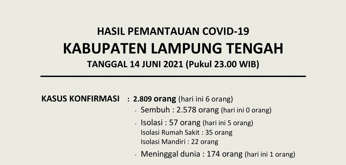 Download dokumen : HASIL PEMANTAUAN COVID-19 KABUPATEN LAMPUNG TENGAH : Tanggal 14 Juni 2021 Pukul 23.00 WIB