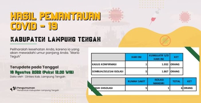 HASIL PEMANTAUAN COVID-19 KABUPATEN LAMPUNG TENGAH : Tanggal 18 Agustus 2022