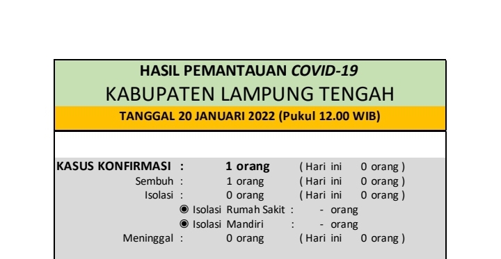 HASIL PEMANTAUAN COVID-19 KABUPATEN LAMPUNG TENGAH : Tanggal 20 Januari 2022