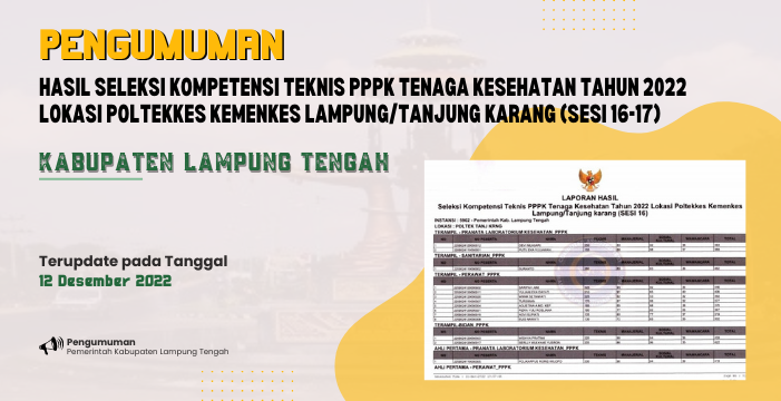 Hasil Seleksi Kompetensi Teknis PPPK Tenaga Kesehatan Tahun 2022 Lokasi Poltekkes Kemenkes Lampung/Tanjung Karang (Sesi 16-17)