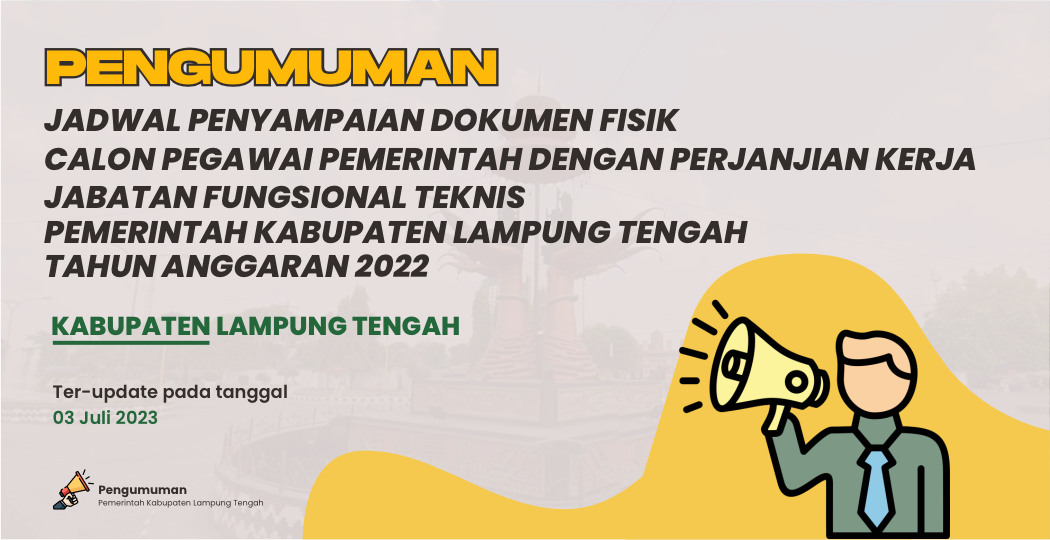 Jadwal Penyampaian Dokumen Fisik Calon Pegawai Pemerintah Dengan Perjanjian Kerja Jabatan Fungsional Teknis Pemerintah Kabupaten Lampung Tengah Tahun Anggaran 2022