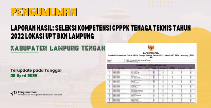 Laporan Hasil: Seleksi Kompetensi CPPPK Tenaga Teknis Tahun 2022 Lokasi UPT BKN Lampung