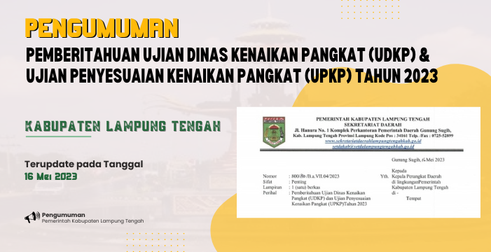 Pemberitahuan Ujian Dinas Kenaikan Pangkat (UDKP) & Ujian Penyesuaian Kenaikan Pangkat (UPKP) Tahun 2023
