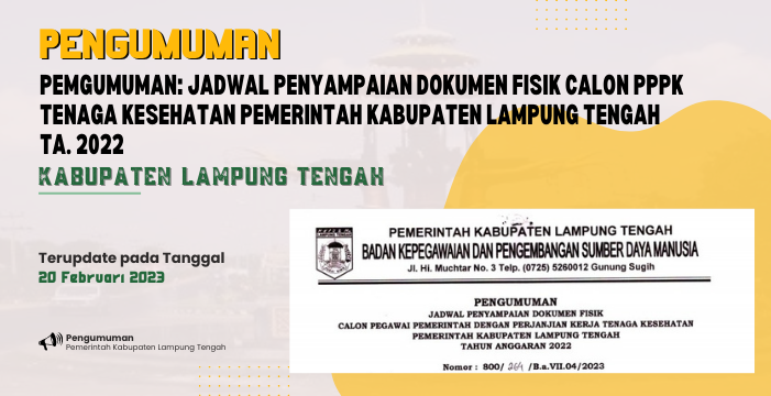 PEMGUMUMAN: JADWAL PENYAMPAIAN DOKUMEN FISIK CALON PPPK TENAGA KESEHATAN PEMERINTAH KABUPATEN LAMPUNG TENGAH TA. 2022