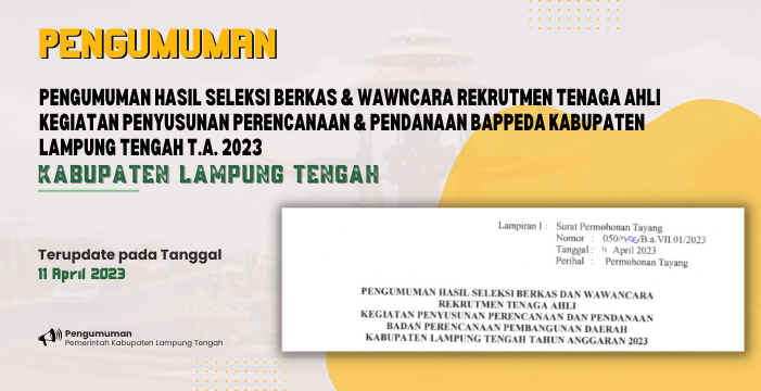 PENGUMUMAN HASIL SELEKSI BERKAS & WAWNCARA REKRUTMEN TENAGA AHLI KEGIATAN PENYUSUNAN PERENCANAAN & PENDANAAN BAPPEDA KABUPATEN LAMPUNG TENGAH T.A. 2023