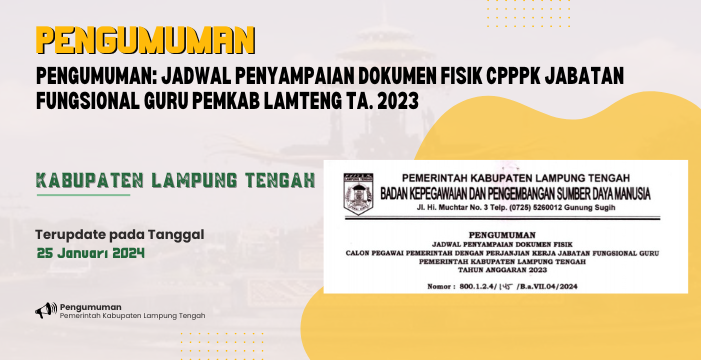 PENGUMUMAN: JADWAL PENYAMPAIAN DOKUMEN FISIK CPPPK JABATAN FUNGSIONAL GURU PEMKAB LAMTENG TA. 2023