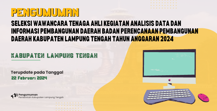 PENGUMUMAN: SELEKSI WAWANCARA TENAGA AHLI KEGIATAN ANALISIS DATA DAN INFORMASI PEMBANGUNAN DAERAH BADAN PERENCANAAN PEMBANGUNAN DAERAH KABUPATEN LAMPUNG TENGAH TAHUN ANGGARAN 2024