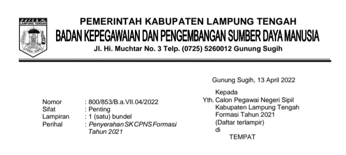 PENYESUAIAN JADWAL PENGANGKATAN PPPK PARUH WAKTU DI LINGKUNGAN PEMERINTAH KABUPATEN LAMPUNG TENGAH