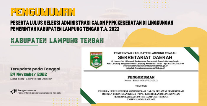 Peserta Lulus Seleksi Administrasi Calon PPPK Kesehatan di Lingkungan Pemerintah Kabupaten Lampung Tengah T.A. 2022