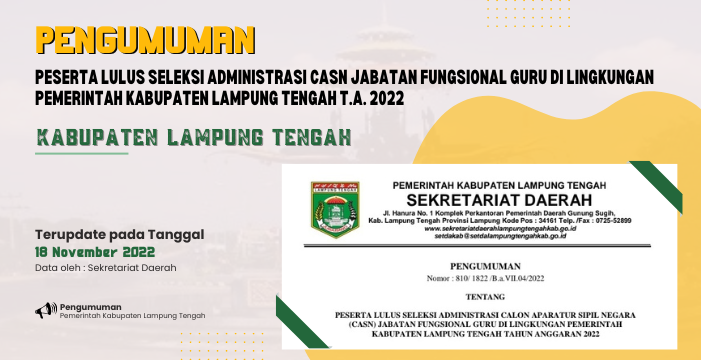 Peserta Lulus Seleksi Administrasi CASN Jabatan Fungsional Guru di Lingkungan Pemerintah Kabupaten Lampung Tengah T.A. 2022