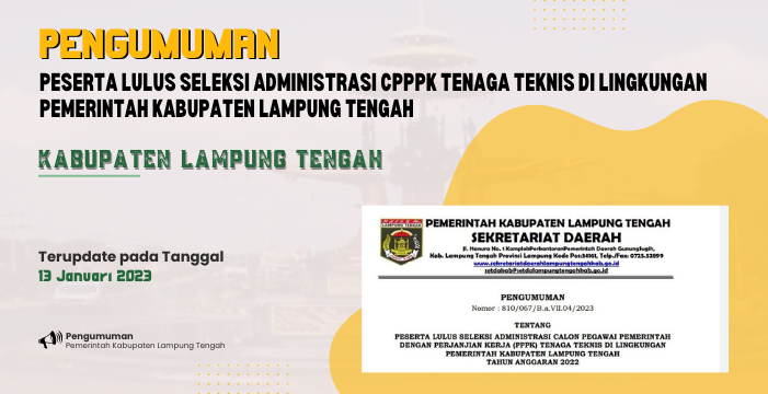 Peserta Lulus Seleksi Administrasi CPPPK Tenaga Teknis di Lingkungan Pemerintah Kabupaten Lampung Tengah T.A. 2022