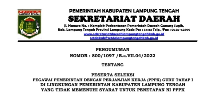 PENGUMUMAN PENGADAAN PPPK PARUH WAKTU DI LINGKUNGAN PEMERINTAH KABUPATEN LAMPUNG TENGAH T.A. 2024