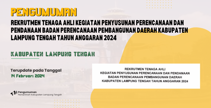 REKRUTMEN TENAGA AHLI KEGIATAN PENYUSUNAN PERENCANAAN DAN PENDANAAN BADAN PERENCANAAN PEMBANGUNAN DAERAH KABUPATEN LAMPUNG TENGAH TAHUN ANGGARAN 2024