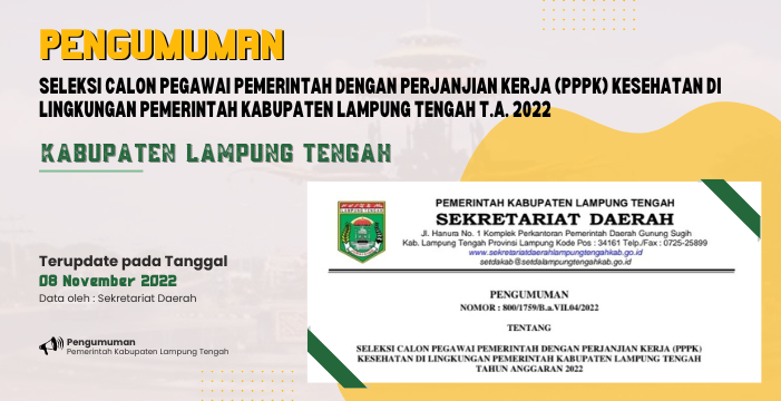 Seleksi Calon Pegawai Pemerintah dengan Perjanjian Kerja (PPPK) Kesehatan di Lingkungan Pemerintah Kabupaten Lampung Tengah T.A. 2022