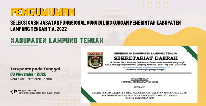 Seleksi CASN Jabatan Fungsional Guru di Lingkungan Pemerintah Kabupaten Lampung Tengah T.A. 2022
